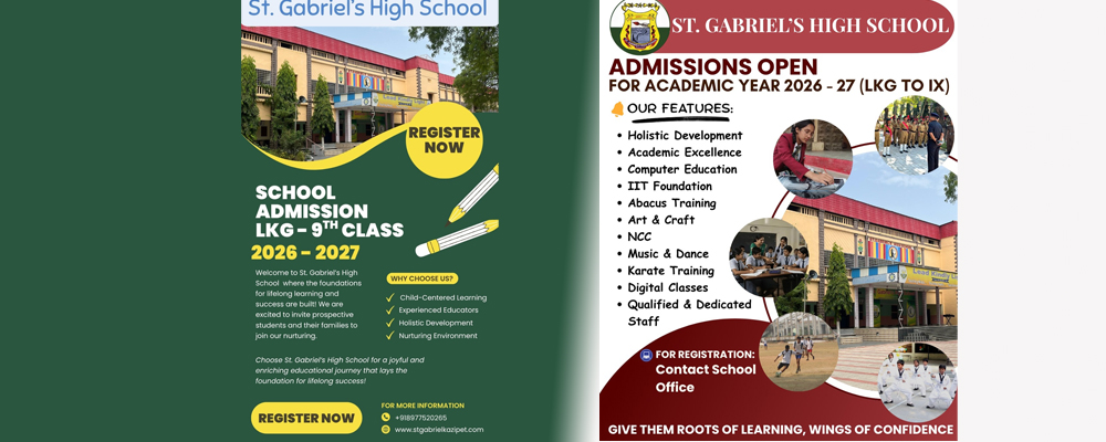 St. Gabriel’s High School, Fatimanagar, Kazipet, Hanumakonda was established by the Society of the Brothers of St. Gabriel in June 1955. It is recognized by the Government of Andhra Pradesh and runs classes from Kindergarten to X, preparing students for the SSC Examinations.